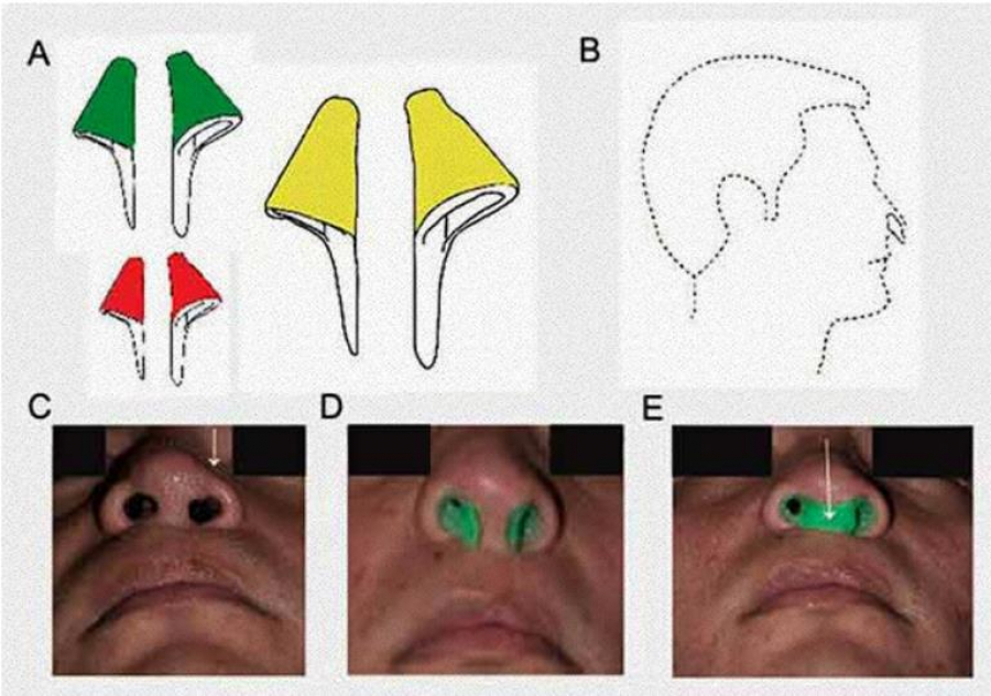 Son dispositivos médicos elaborados en forma anatómica –con metil metacrilato, material que permite su fijación con las dos narinas–, destinados a modificar una parte de las consecuencias que quedan después de una serie de intervenciones a las que son sometidos para corregir las alteraciones físicas; en este caso la posición del ala nasal.