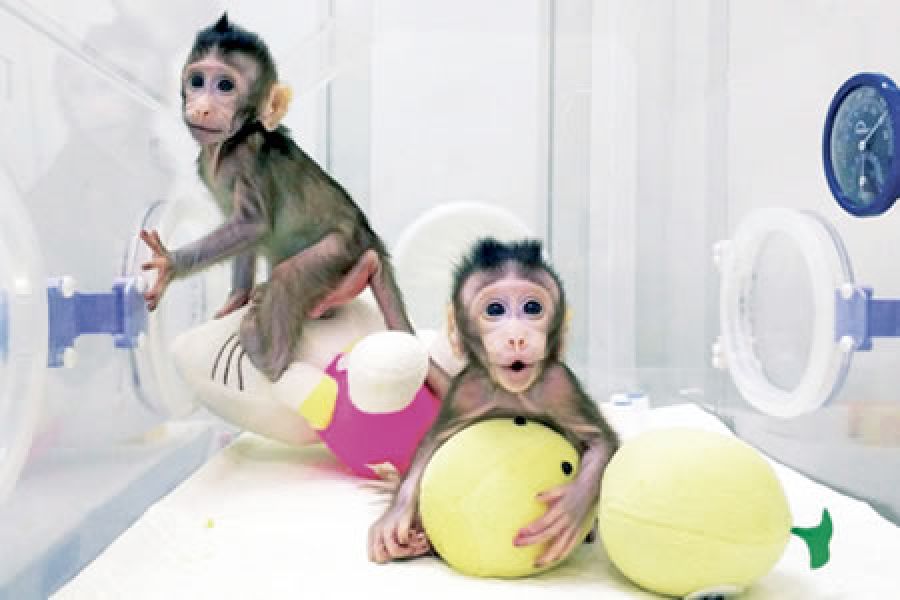 Los primeros clones de primates creados como la oveja Dolly, por transferencia nuclear de células somáticas, son dos macacos de cola larga genéticamente idénticos nacidos en Shanghái (China).