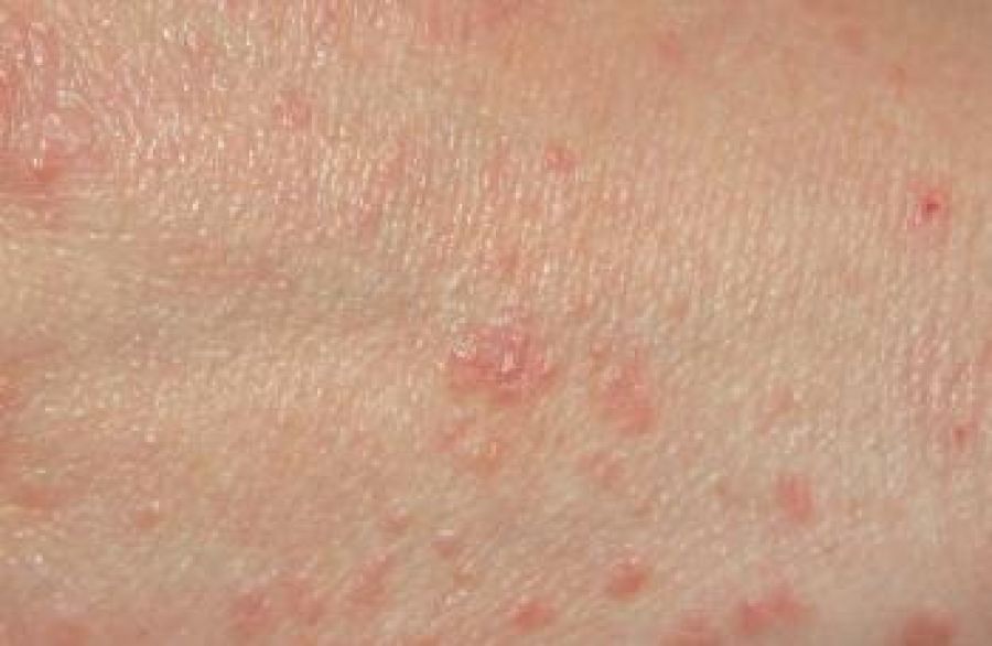 La principal manifestación de esta enfermedad es una comezón excesiva y el surgimiento de ampollas y pequeñas lesiones en la piel, que tienen algunas costras sanguíneas. La complicación más común de esta enfermedad son infecciones por bacterias. Comúnmente afecta desde los hombros hasta las rodillas, aunque también puede estar presente en el cuero cabelludo y las palmas de las manos.