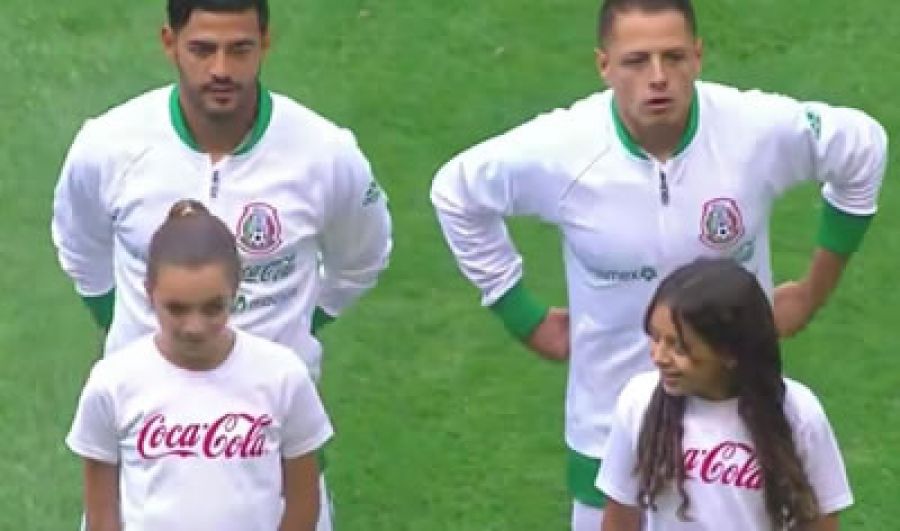 El pasado domingo 11 de junio, en el encuentro de eliminatorias para la Copa Mundial en Rusia 2018, entre las selecciones de futbol de México y los Estados Unidos en el Estadio Azteca, los jugadores de ambos equipos, como es costumbre establecida por FIFA, salieron acompañados de niñas y niños de 8 a 10 años que, de manera inusual, llevaban grandes logos de la marca Coca-Cola impresos en sus camisetas blancas. El acto protocolario en el que se cantan los himnos y se presentan las banderas de cada nación se realizó teniendo frente a cada uno de los jugadores a los niñas y niños portando el logo de la refresquera y mientras, otros niños con los mismos logos sostenían las banderas de México y Estados Unidos.